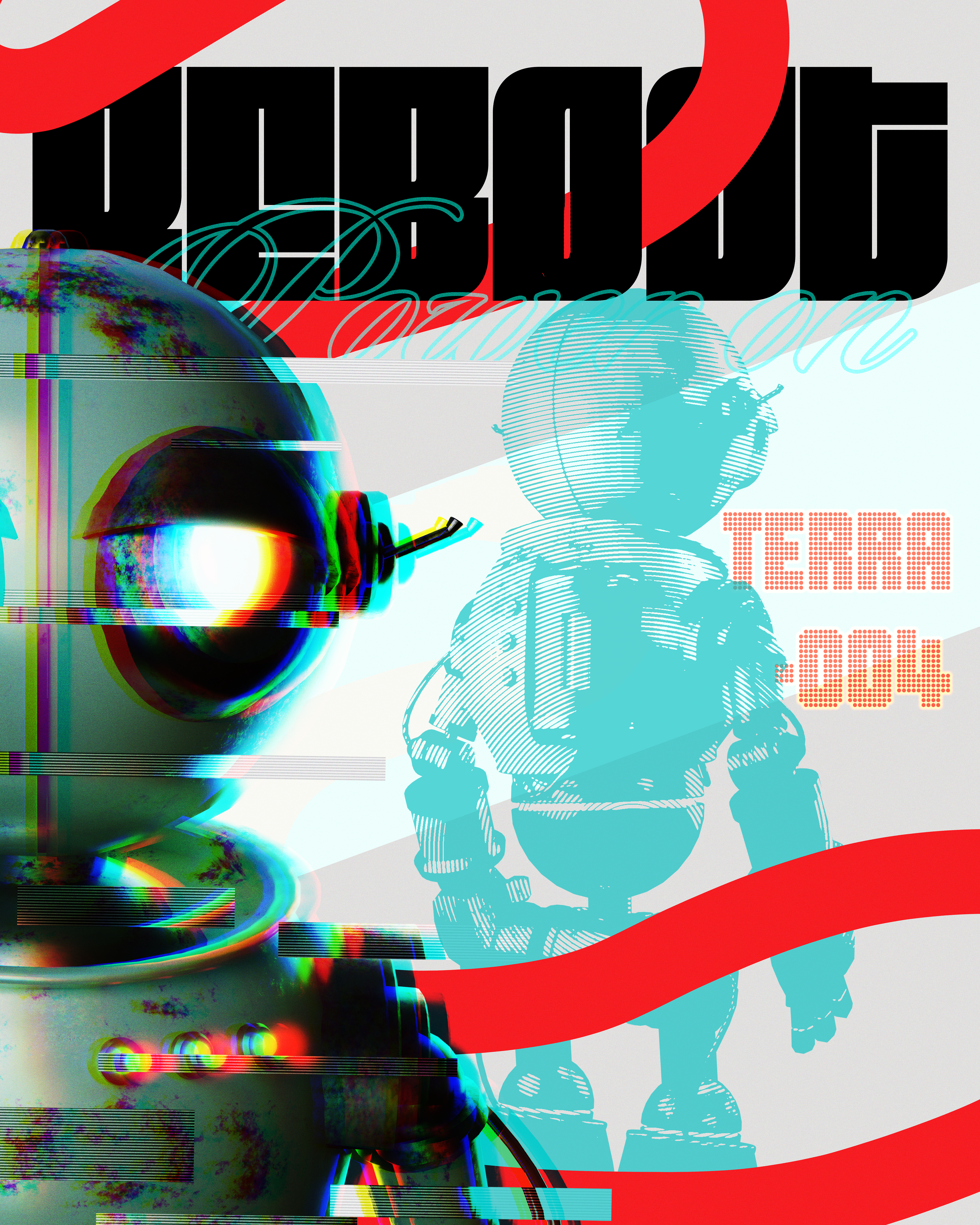 This is a poster I made for my Bachelor's of Fine Arts Exhibition, showcasing my 3D modeled robot. Titled "Reboot," this graphic combining 3D modeling and graphic design teases a futuristic short story I plan to make with this original character.