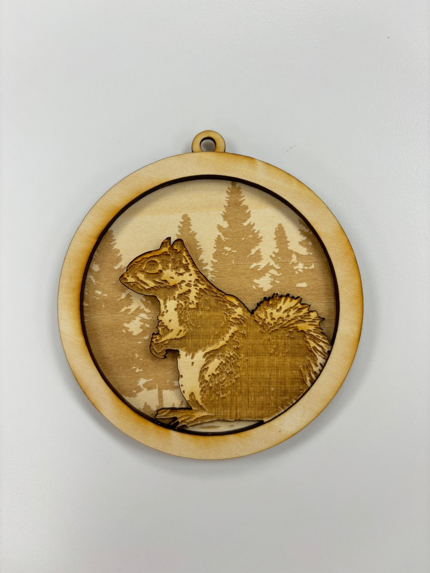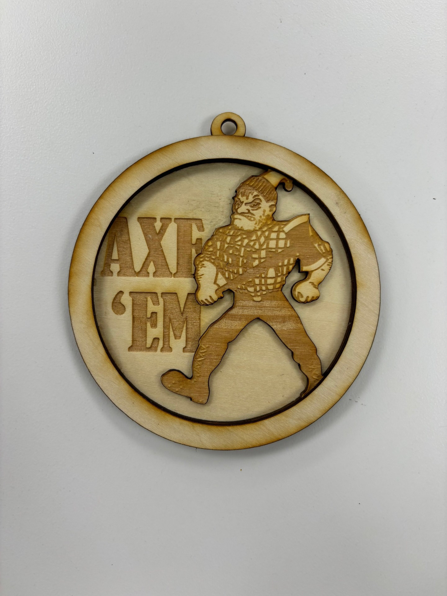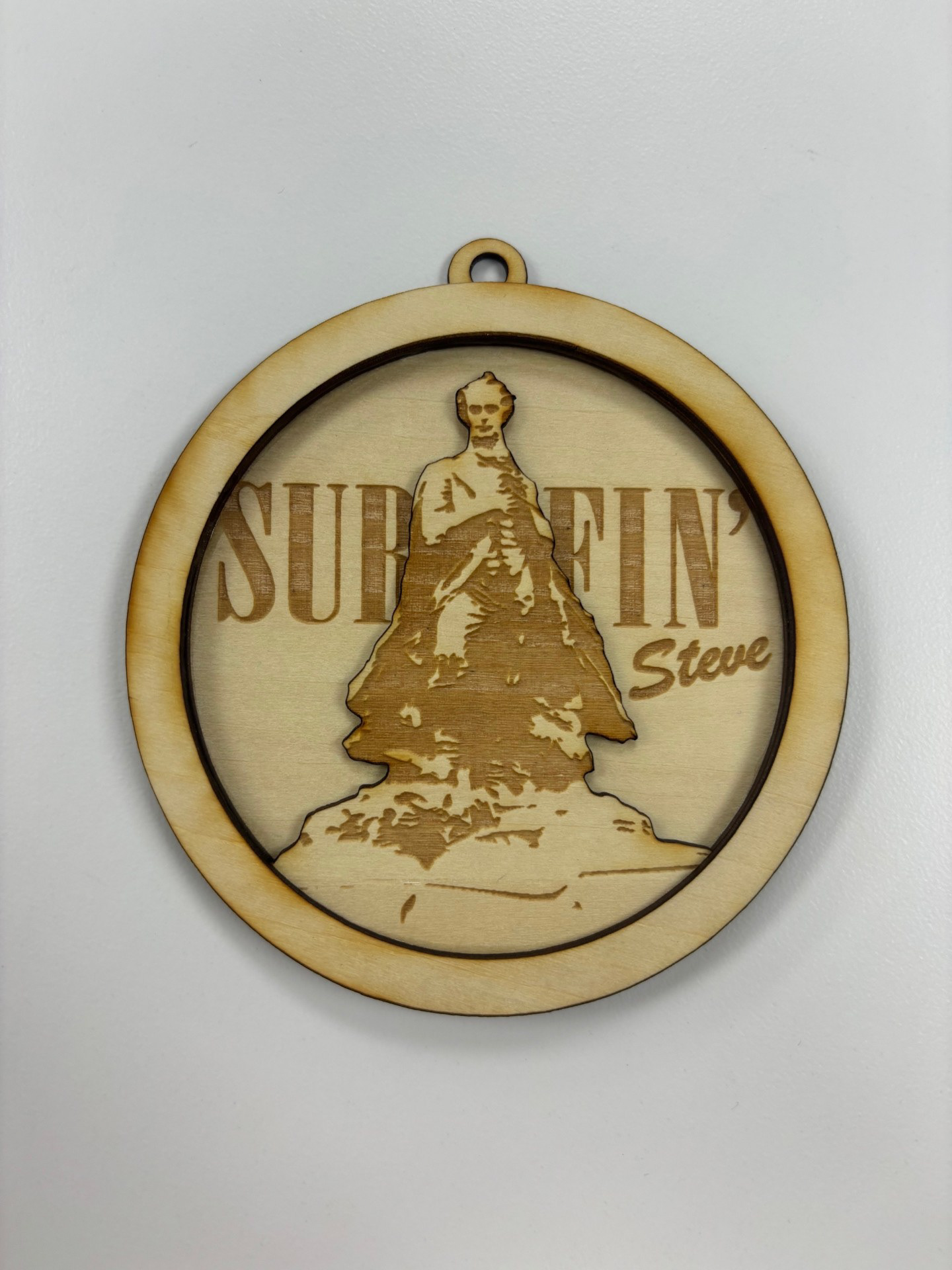 These ornaments were designed layer by layer separately in Adobe Illustrator to be laser engraved. The layers were then assembled by guests at an SFA Makerspace holiday activity event. I was responsible for not only the creation of the designs, but the testing and application of the laser cutting/engraving.