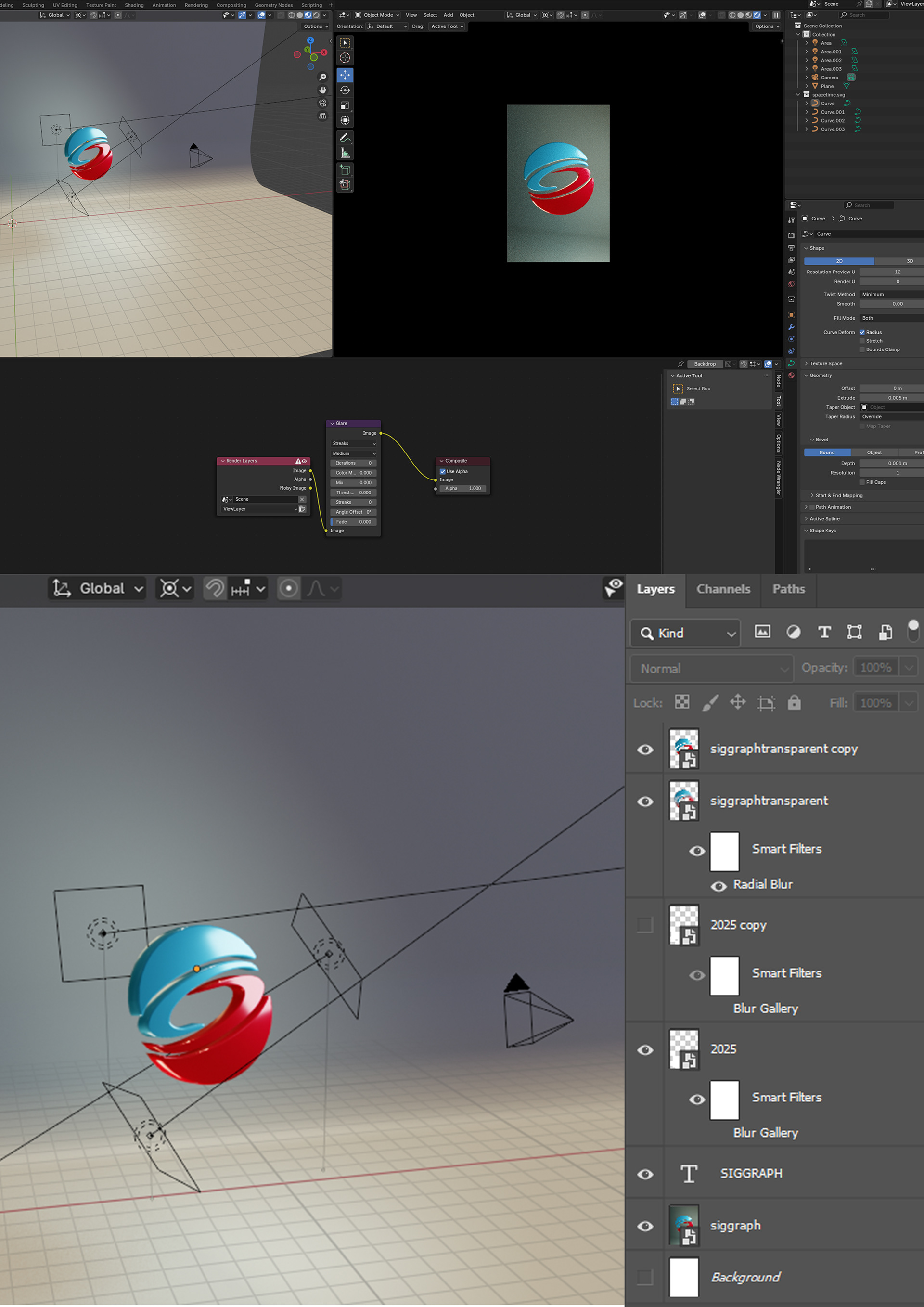 I went for a minimalist design, creating a 3D version of the SpaceTime Logo in Blender and applying effects and a futuristic font with Photoshop.